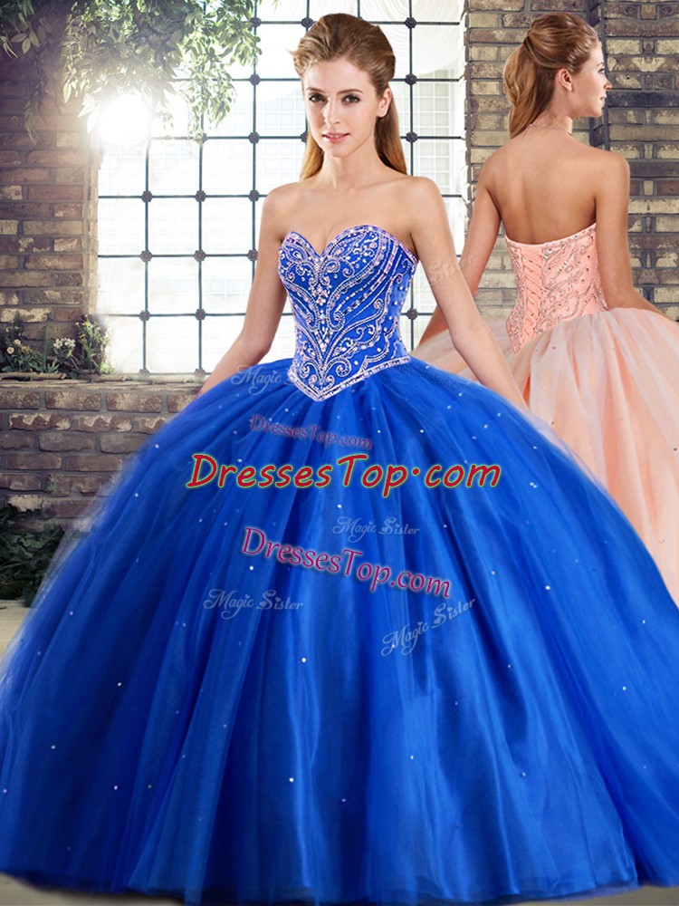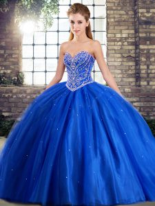 Beautiful Sweetheart Sleeveless Tulle Quinceanera Dress Beading Brush Train Lace Up