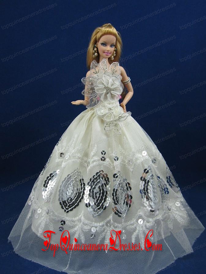 Beautiful White Dress With Sequins Made To Fit The Barbie Doll