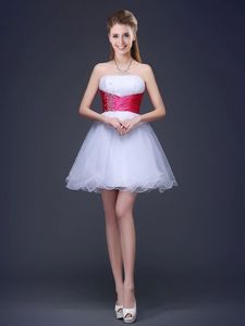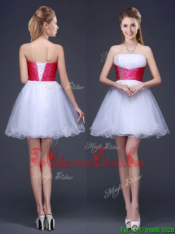 Beautiful White Sleeveless Mini Length Beading and Ruching and Belt Lace Up Court Dresses for Sweet 16