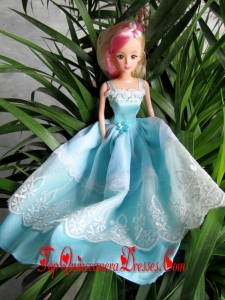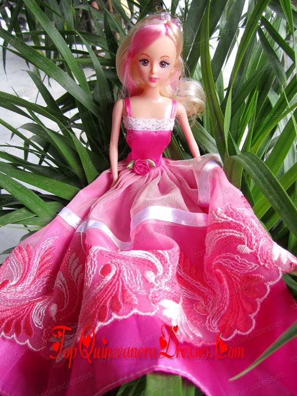 Beauty Party Dress To Barbie Doll With Hand Made Flowers and Embroidery