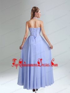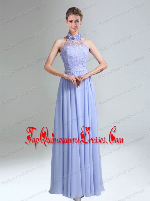 Belt and Lace Halter Empire Lace Up Dama Dress for 2015