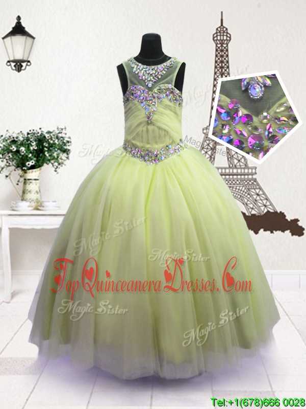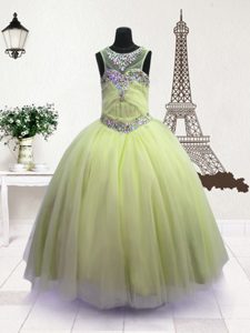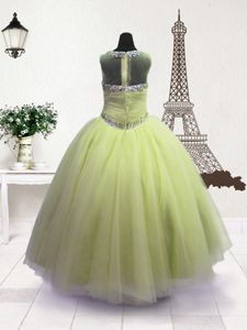 Best Apple Green Organza Zipper Scoop Sleeveless Floor Length Pageant Gowns For Girls Beading