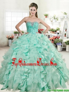 Best Apple Green Quinceanera Dress with Beading and Ruffles for Spring