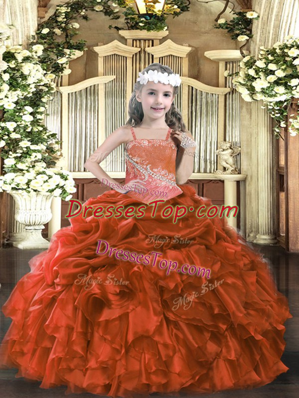 Best Ball Gowns Little Girls Pageant Dress Wholesale Rust Red Straps Organza Sleeveless Floor Length Lace Up