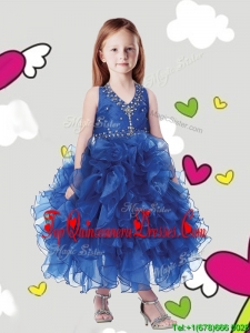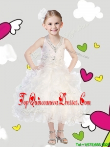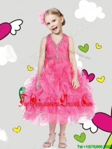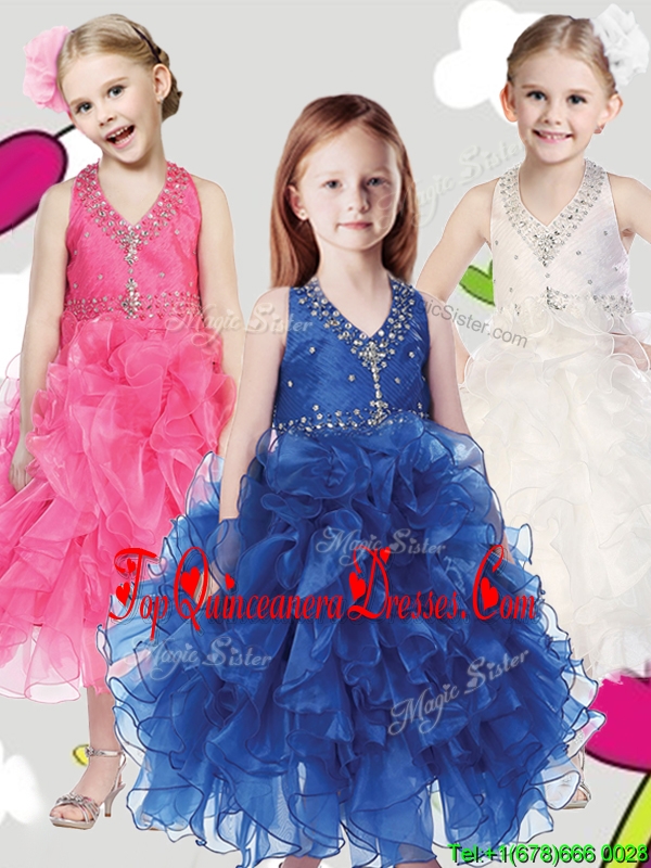 Best Beaded and Ruffled Halter Top New Arrival Kid Pageant Dresses in Tea Length
