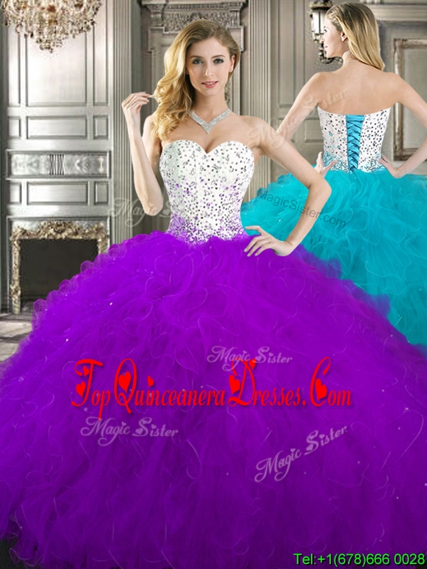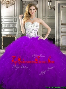 Best Beaded and Ruffled Quinceanera Dress in Purple and White