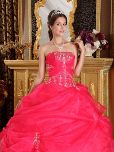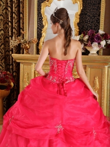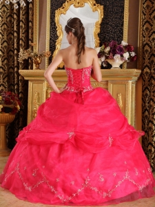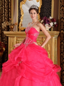 Best Coral Red Sweet 16 Dress Organza Appliques Ball Gown