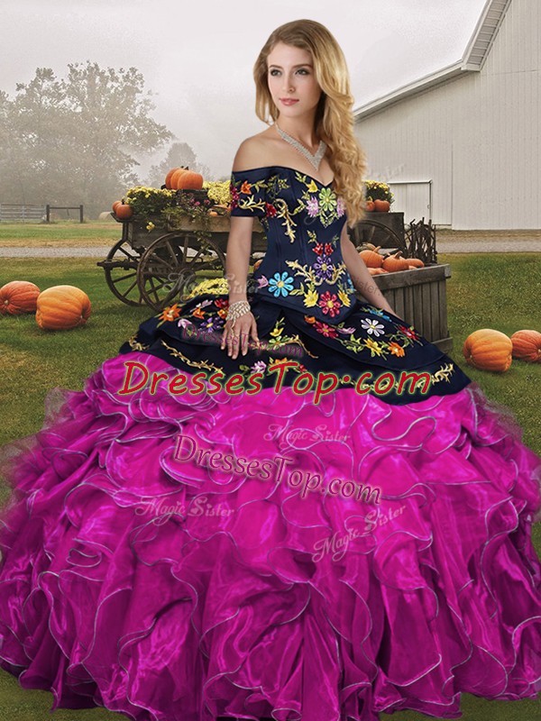 Best Embroidery and Ruffles Quinceanera Dress Fuchsia Lace Up Sleeveless Floor Length