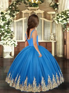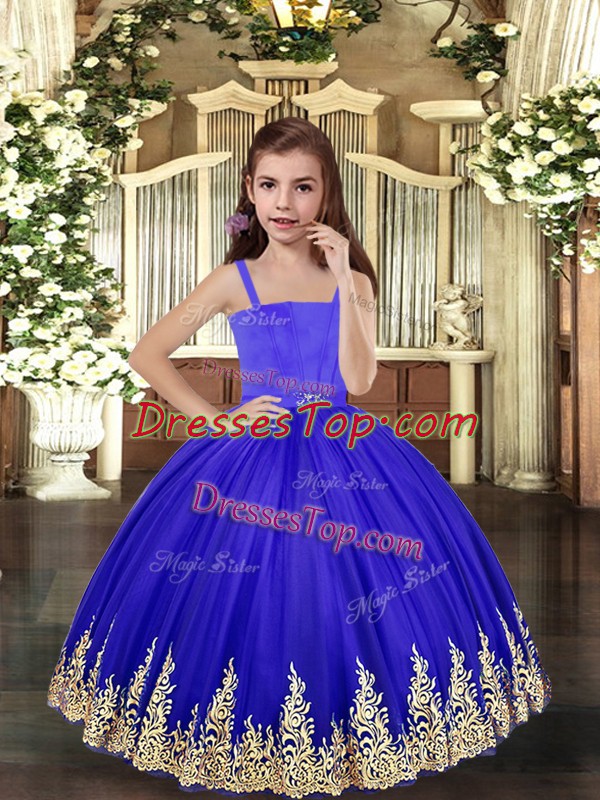 Best Floor Length Royal Blue Pageant Gowns For Girls Straps Sleeveless Lace Up