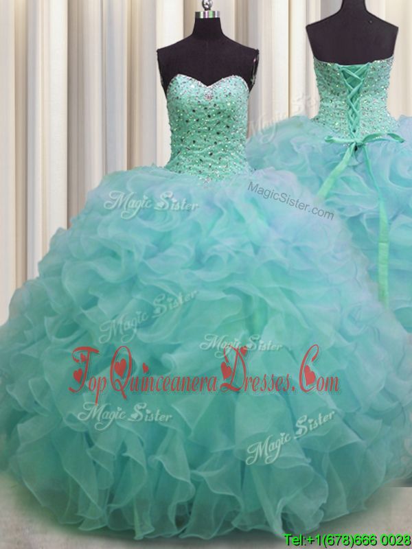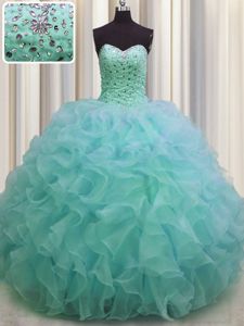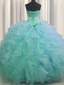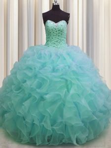 Best Green Sweetheart Neckline Beading and Ruffles Ball Gown Prom Dress Sleeveless Lace Up