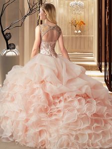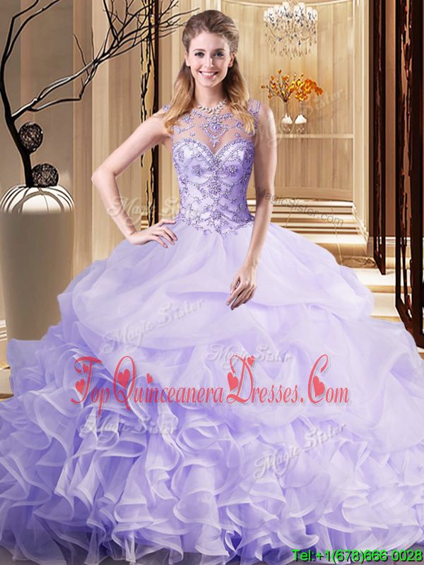 Best Lavender Quinceanera Gowns Military Ball and Sweet 16 and Quinceanera and For with Beading and Ruffles and Pick Ups Scoop Sleeveless Brush Train Lace Up