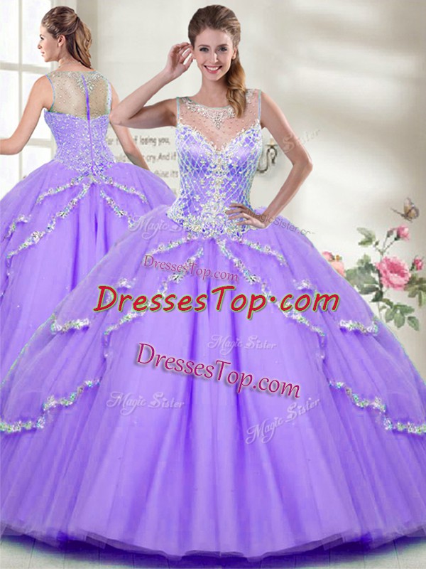 Best Lavender Zipper 15th Birthday Dress Beading Sleeveless Floor Length
