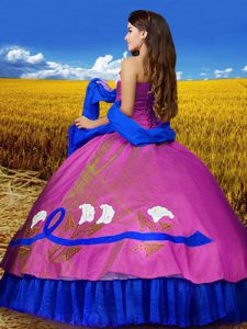Best Multi-color Sweetheart Lace Up Embroidery 15 Quinceanera Dress Sleeveless