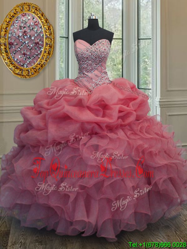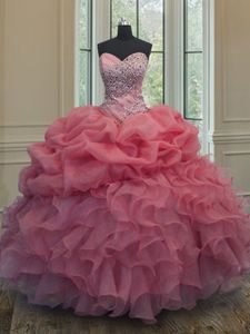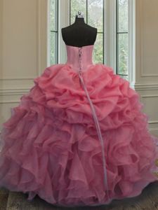 Best Pink Sweetheart Neckline Beading and Ruffles and Pick Ups Vestidos de Quinceanera Sleeveless Lace Up