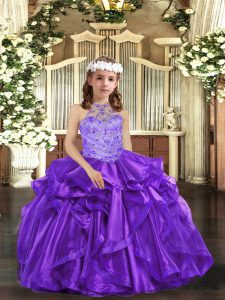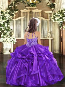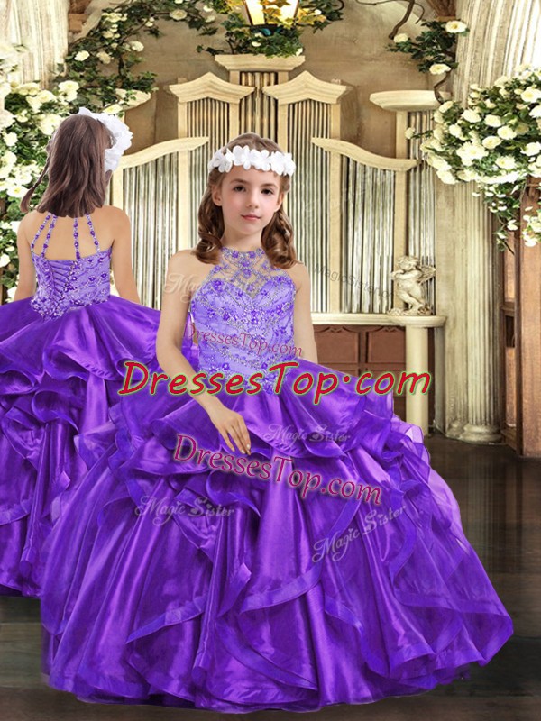 Best Purple Ball Gowns Beading and Ruffles Little Girls Pageant Dress Lace Up Organza Sleeveless Floor Length