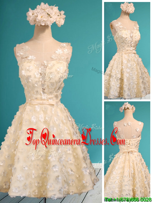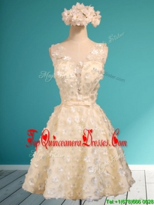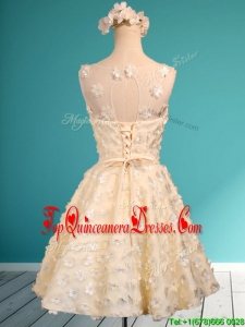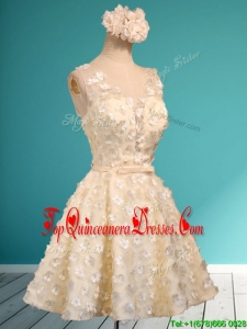 Best Scoop Champagne Short Damas Dress with Appliques and Belt