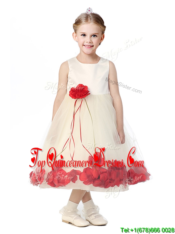 Best Scoop New Arrival Kid Pageant Dresses with Red Hand Made Flowers