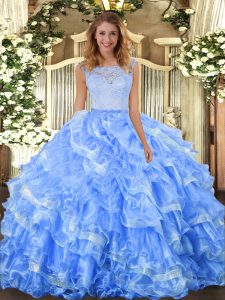 Best Selling Ball Gowns Sweet 16 Quinceanera Dress Light Blue Scoop Organza Sleeveless Floor Length Clasp Handle