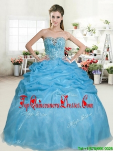 Best Selling Beaded and Pick Ups Quinceanera Dress in Baby Blue