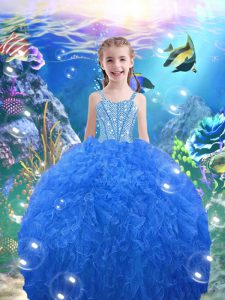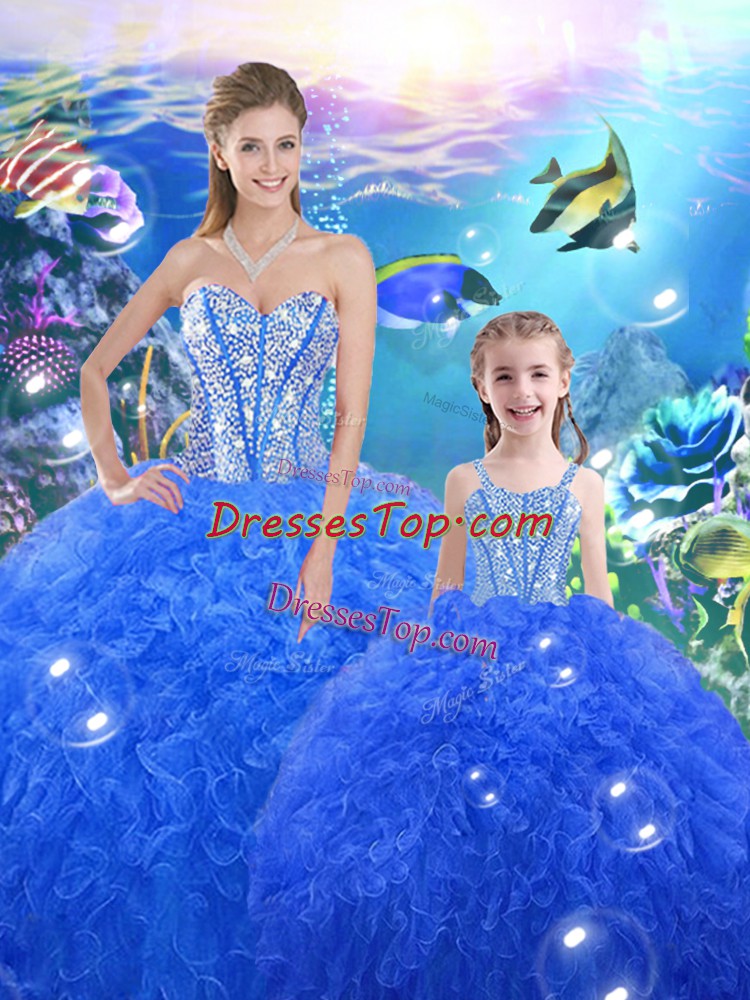 Best Selling Beading and Ruffles Sweet 16 Quinceanera Dress Blue Lace Up Sleeveless Floor Length