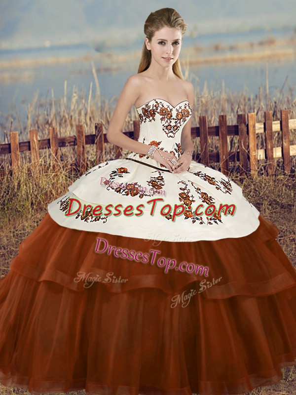 Best Selling Brown Sleeveless Tulle Lace Up Quinceanera Gowns for Military Ball and Sweet 16 and Quinceanera