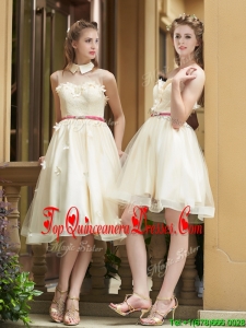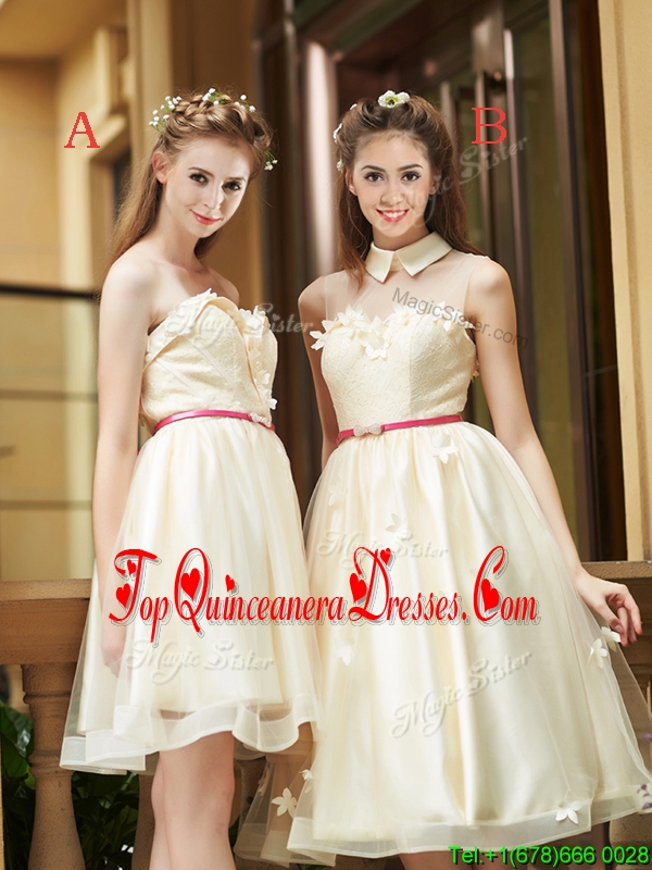 Best Selling Champagne Organza Dama Dress with Appliques and Sashes