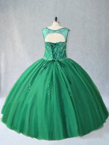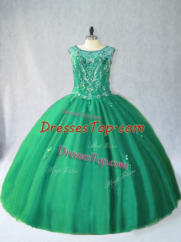 Best Selling Green Tulle Lace Up 15 Quinceanera Dress Sleeveless Floor Length Beading