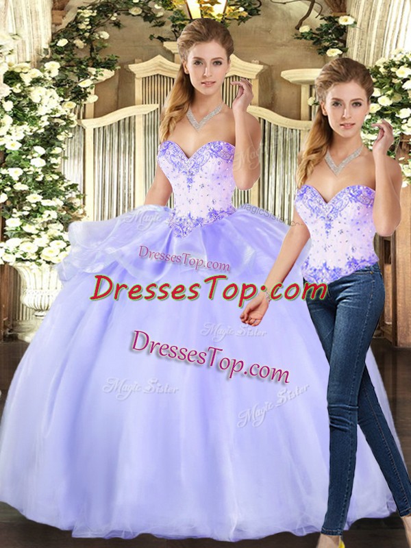 Best Selling Lavender Organza Lace Up Sweetheart Sleeveless Floor Length Quinceanera Dress Beading
