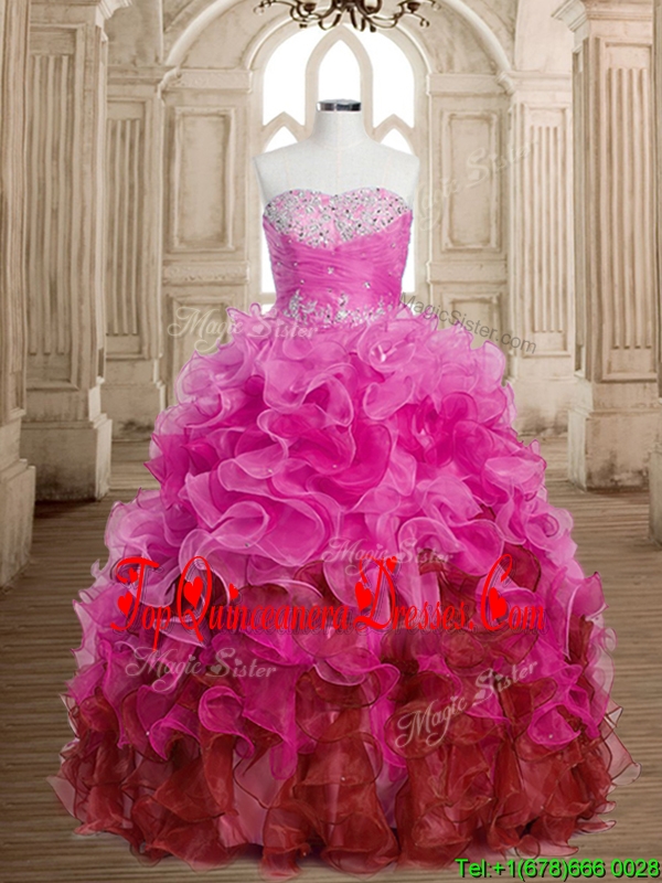 Best Selling Rainbow Quinceanera Dress with Beading and Ruffles