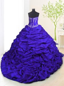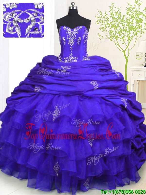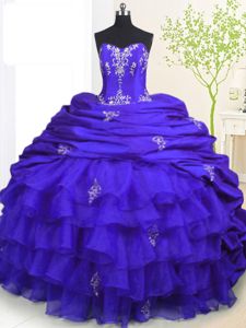 Best Selling Royal Blue Sleeveless With Train Beading and Appliques and Ruffled Layers and Pick Ups Lace Up Quinceanera Gown