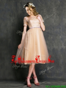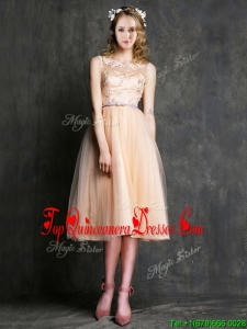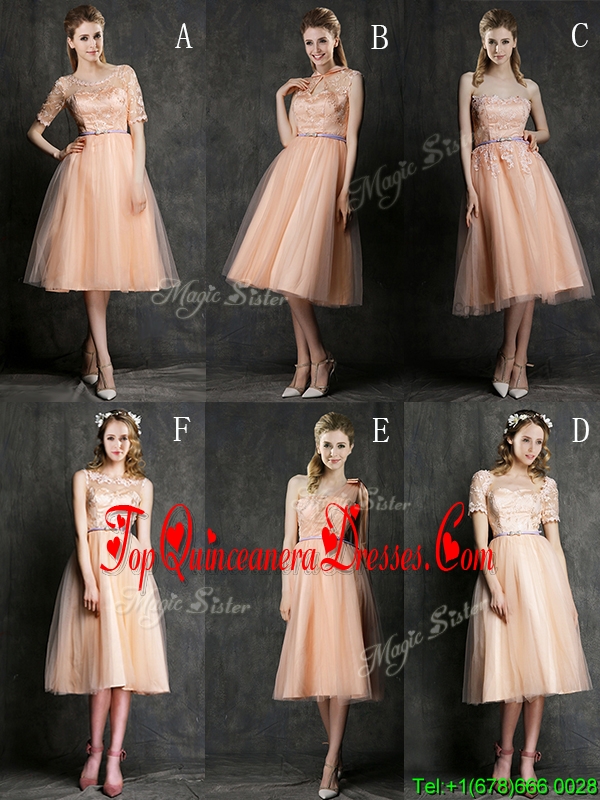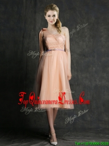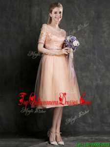 Best Selling Sashed Peach Quinceanera Dama Dress in Knee Length