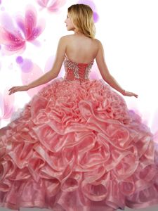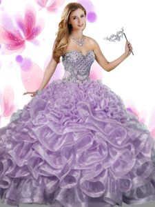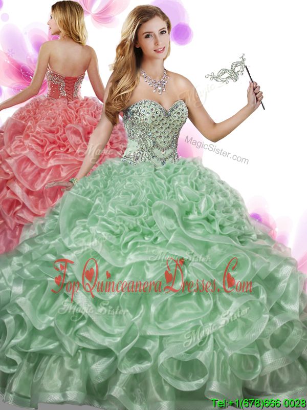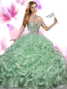 Best Selling Sleeveless Floor Length Beading and Ruffles Lace Up Sweet 16 Dresses with Green