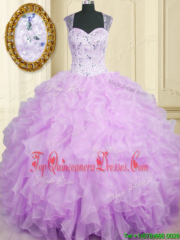 Best Selling Sleeveless Floor Length Beading and Ruffles Zipper Quinceanera Dress with Lavender