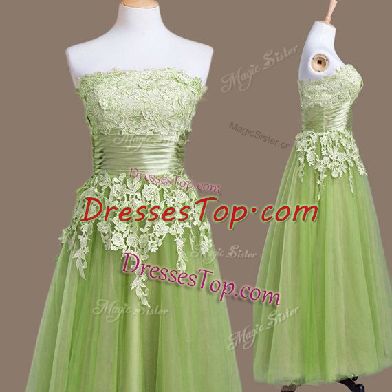Best Selling Sleeveless Tea Length Appliques Lace Up Court Dresses for Sweet 16 with