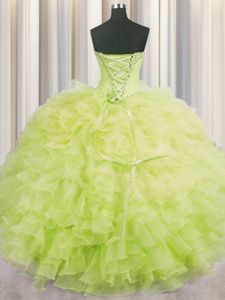 Best Selling Sweetheart Sleeveless Lace Up Sweet 16 Quinceanera Dress Yellow Green Organza