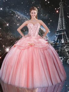 Best Selling Sweetheart Sleeveless Sweet 16 Dress Floor Length Beading Pink Tulle