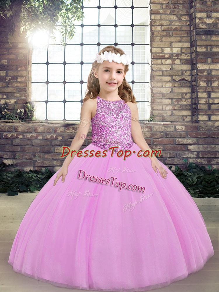 Best Sleeveless Beading Lace Up Child Pageant Dress