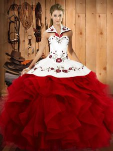 Best Sleeveless Embroidery and Ruffles Lace Up Sweet 16 Quinceanera Dress