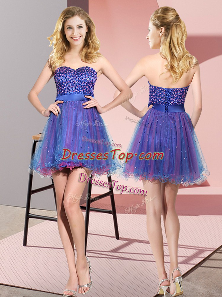 Best Sleeveless Tulle Mini Length Lace Up Dama Dress in Multi-color with Beading and Sequins