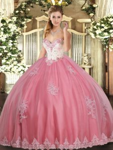 Best Sweetheart Sleeveless Lace Up Ball Gown Prom Dress Watermelon Red Tulle