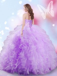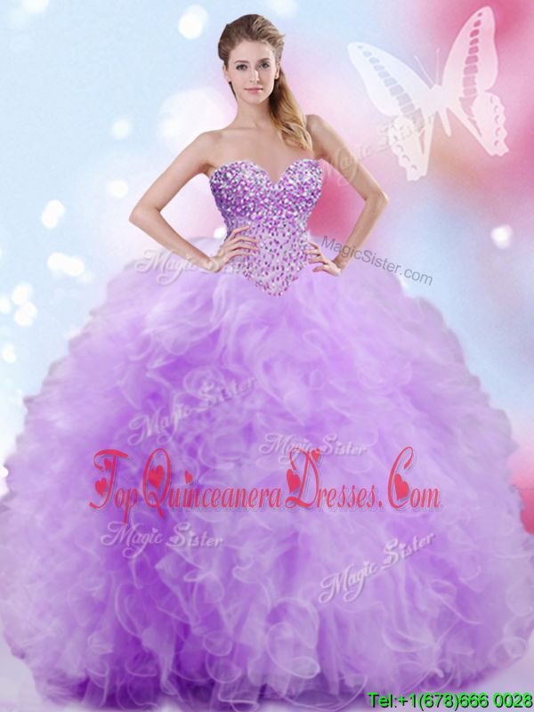 Best Sweetheart Sleeveless Tulle Dama Dress for Quinceanera Beading and Ruffles Lace Up