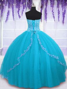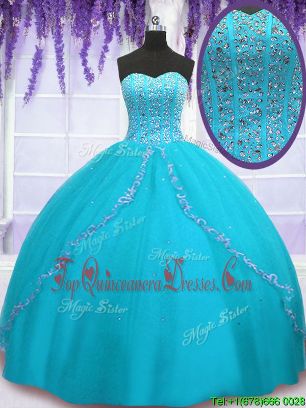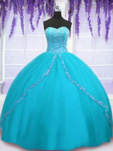 Best Sweetheart Sleeveless Tulle Quince Ball Gowns Beading and Sequins Backless