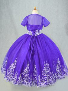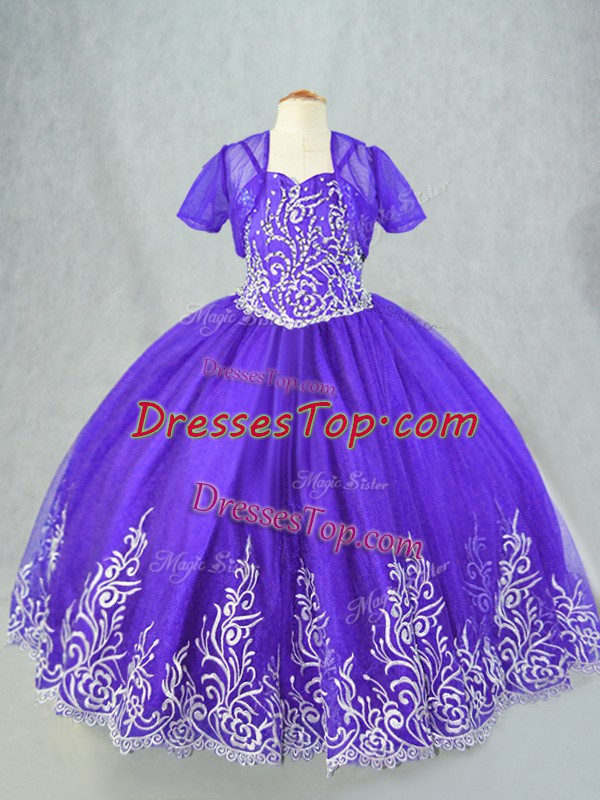Best Tulle Spaghetti Straps Sleeveless Lace Up Beading and Embroidery Child Pageant Dress in Purple