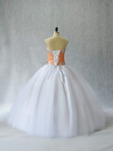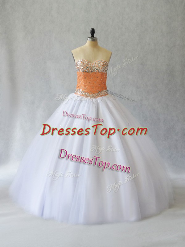 Best White Lace Up Quinceanera Dress Beading Sleeveless Floor Length