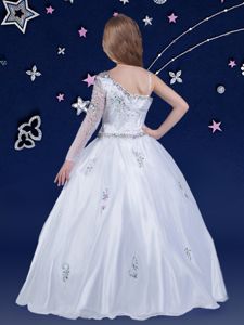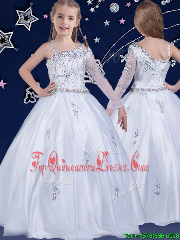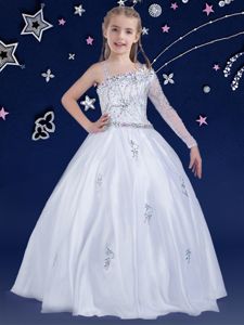 Best White Sleeveless Floor Length Beading Zipper Kids Pageant Dress