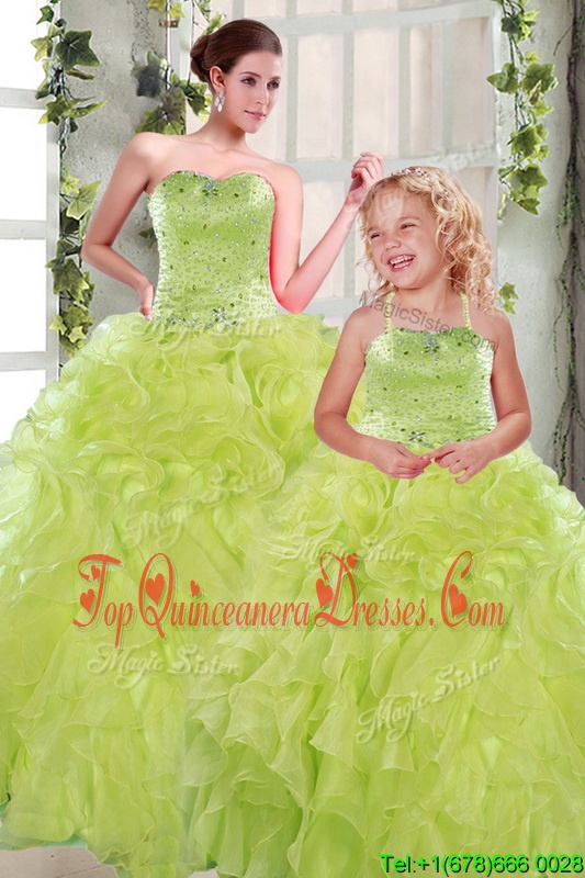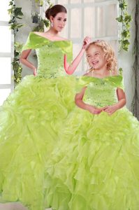 Best Yellow Green Organza Lace Up Ball Gown Prom Dress Sleeveless Floor Length Beading and Ruffles