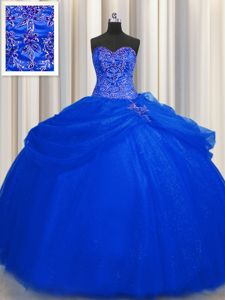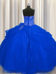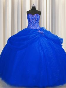 Big Puffy Royal Blue Lace Up Sweetheart Beading Sweet 16 Dress Tulle Sleeveless