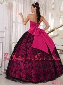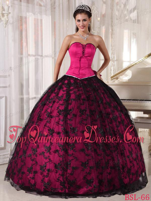 Black and Red Sweetheart Floor-length Tulle and Taffeta Lace Quinceanera Dress