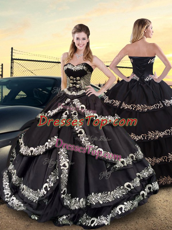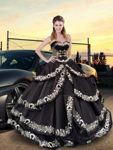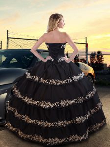 Black Ball Gowns Embroidery and Ruffled Layers Quinceanera Gown Lace Up Taffeta Sleeveless Floor Length