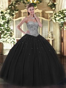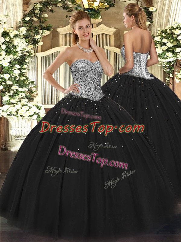 Black Lace Up Sweetheart Beading Quinceanera Dress Tulle Sleeveless